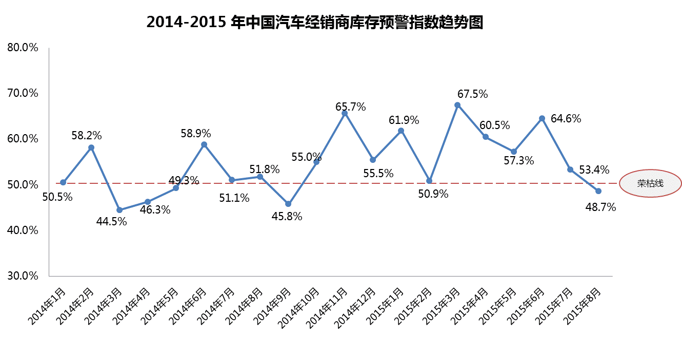 2015年8月份中國汽車經(jīng)銷商庫存預警指數(shù)為48.7%