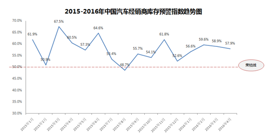 2016年4月份中國汽車經(jīng)銷商庫存預(yù)警指數(shù)為57.9%