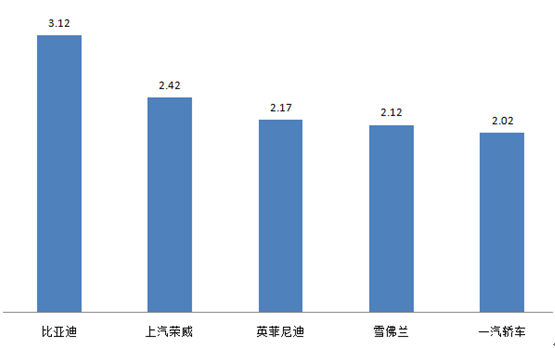 調(diào)查顯示,3月份,庫存深度在2個月以上的品牌有:比亞迪、上汽榮威、英菲尼迪、雪佛蘭、一汽轎車。