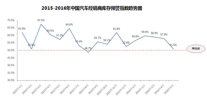 2016年5月份中國(guó)汽車經(jīng)銷商庫(kù)存預(yù)警指數(shù)為51.0%