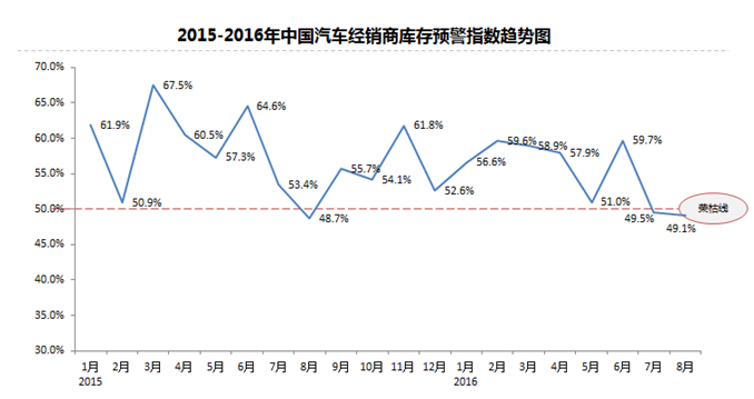 2016年8月份中國汽車經(jīng)銷商庫存預(yù)警指數(shù)為49.1%