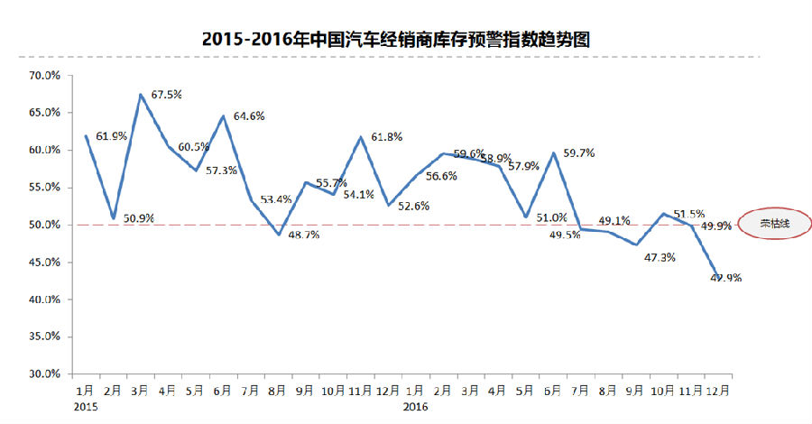 2016年12月份中國汽車經(jīng)銷商庫存預(yù)警指數(shù)為42.9%