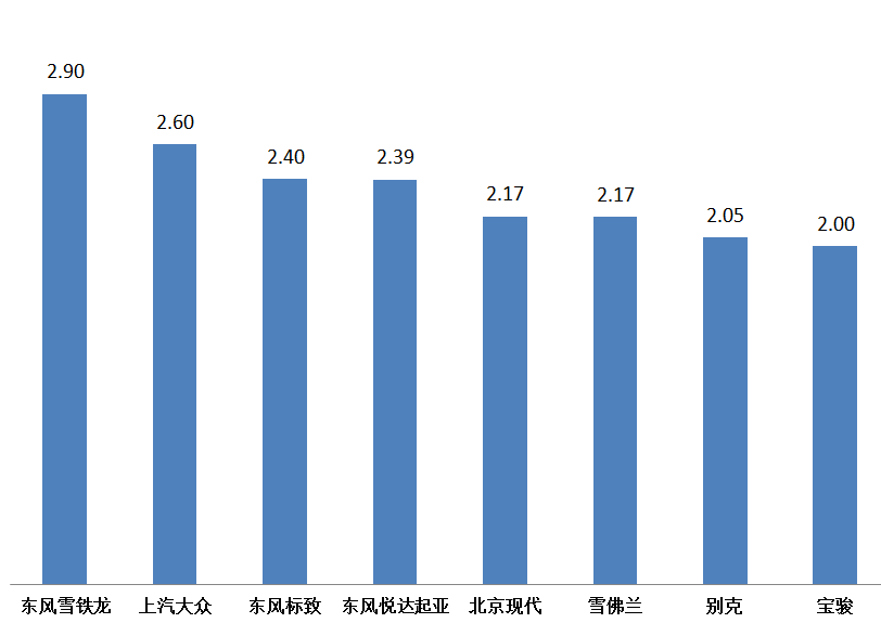 1月,8個(gè)品牌庫存深度在兩個(gè)月以上,分別是東風(fēng)雪鐵龍、上汽大眾、東風(fēng)標(biāo)致、東風(fēng)悅達(dá)起亞、北京現(xiàn)代、雪佛蘭、別克、寶駿。