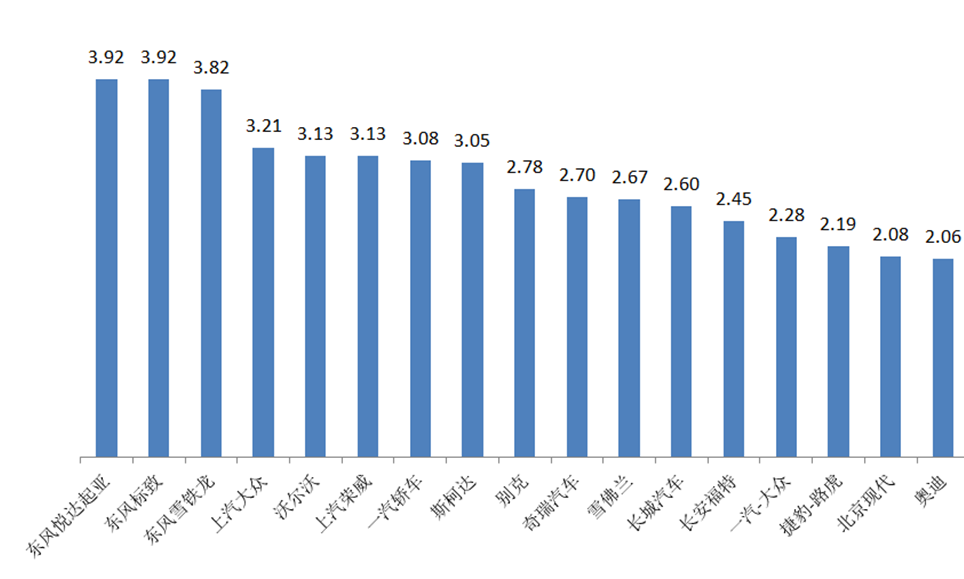 2月,17個品牌庫存深度在兩個月以上,分別是:東風(fēng)悅達起亞、東風(fēng)標(biāo)致、東風(fēng)雪鐵龍、上汽大眾、沃爾沃、上汽榮威、一汽轎車、斯柯達、別克、奇瑞汽車、雪佛蘭、長城汽車、長安福特、一汽-大眾、捷豹路虎、北京現(xiàn)代、奧迪。