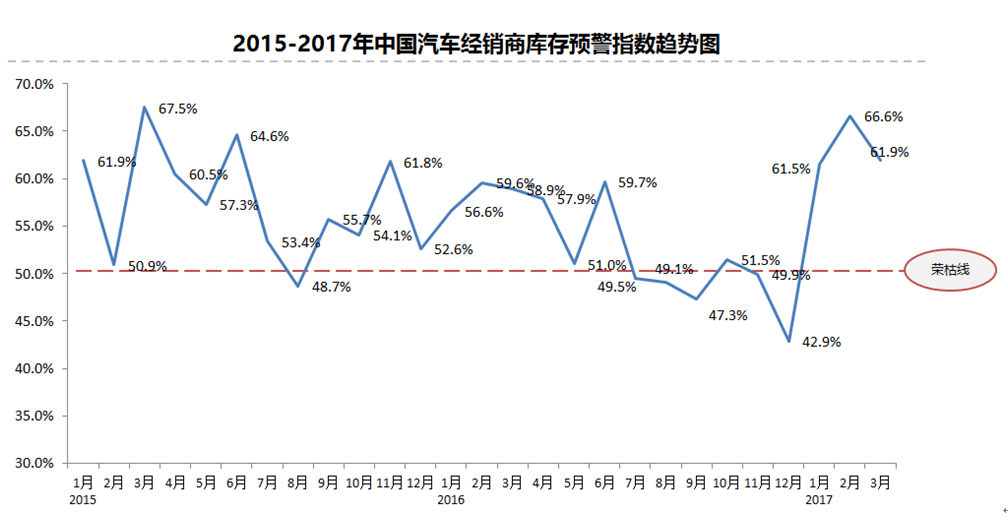 2017年3月份中國(guó)汽車經(jīng)銷商庫(kù)存預(yù)警指數(shù)為61.9%