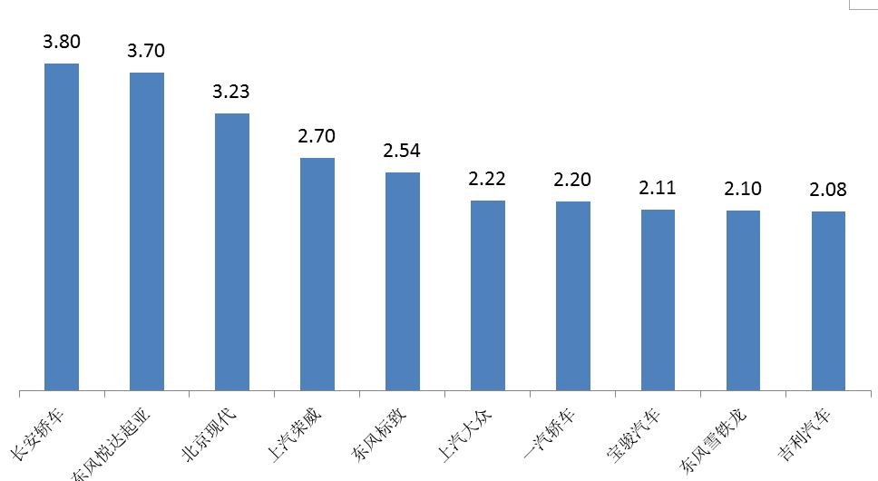 3月,10個(gè)品牌庫(kù)存深度在兩個(gè)月以上,分別是: 長(zhǎng)安轎車(chē)、東風(fēng)悅達(dá)起亞、北京現(xiàn)代、上汽榮威、東風(fēng)標(biāo)致、上汽大眾、一汽轎車(chē)、寶駿汽車(chē)、東風(fēng)雪鐵龍、吉利汽車(chē)。