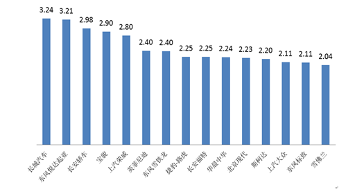 4月,15個品牌庫存深度在兩個月以上,分別是:長城汽車、東風(fēng)悅達起亞、長安轎車、寶駿、上汽榮威、英菲尼迪、東風(fēng)雪鐵龍、捷豹-路虎、長安福特、華晨中華、北京現(xiàn)代、斯柯達、上汽大眾、東風(fēng)標(biāo)致、雪佛蘭。