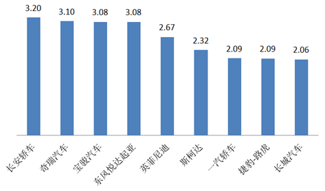 6月,9個(gè)品牌庫存深度在兩個(gè)月以上,分別是:長(zhǎng)安轎車、奇瑞汽車、寶駿汽車、東風(fēng)悅達(dá)起亞、英菲尼迪、斯柯達(dá)、一汽轎車、捷豹-路虎、長(zhǎng)城汽車。