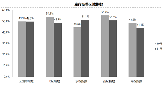 從區(qū)域指數(shù)情況看:11月份全國(guó)總指數(shù)為49.8%,北區(qū)指數(shù)為48.7%,西區(qū)指數(shù)為50.8%,南區(qū)指數(shù)為44.1%,東區(qū)指數(shù)為51.3%。11月份,北部地區(qū)農(nóng)忙結(jié)束,市場(chǎng)需求開始回升;廣州車展對(duì)南部地區(qū)的市場(chǎng)需求也起到了提振作用。