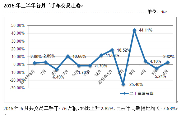 2015年上半年二手車市場(chǎng)交易全口徑統(tǒng)計(jì)情況