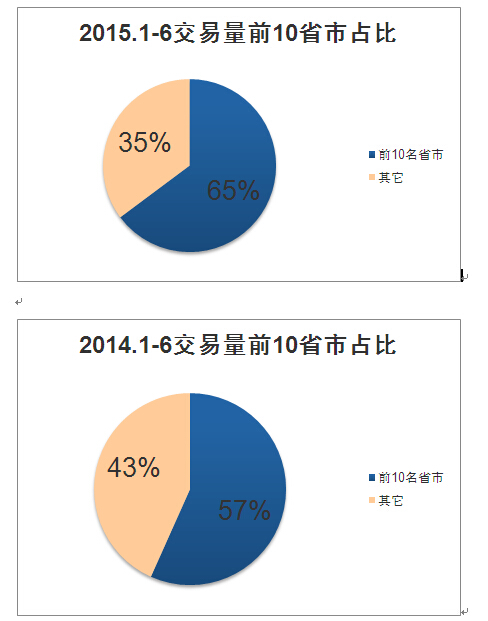 二手車重點(diǎn)區(qū)域市場(chǎng)2015年上半年共交易為289.71萬(wàn)輛,占總交易量65%,比去年同期增長(zhǎng)了8%。