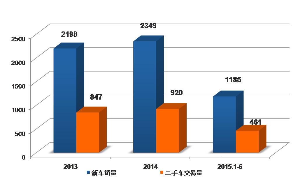 2015年上半年,新車市場(chǎng)上行乏力,增速僅為1.4%,與歷史同期相比回落7%。全國(guó)二手車總交易量461萬(wàn)輛,同比增長(zhǎng)約為6%,與新車的1185 萬(wàn)輛的規(guī)模差距在逐步縮小,二手車行業(yè)的上行空間更顯充足。