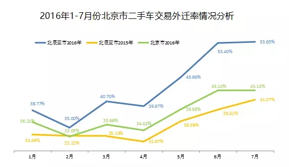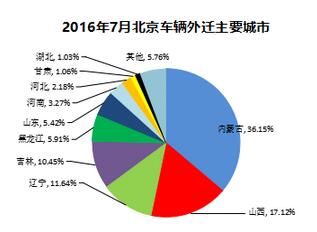 近日,編輯從北辰亞市月度信息會中了解到,2016年1-7月北京市二手車外遷率同比增長19.47%,其中7月二手車外遷率達43.13%。在京城二手車幾大主要遷入地中,剛剛解禁的內(nèi)蒙古、山西、遼寧等省上漲明顯,遷入總量占比超過60%。