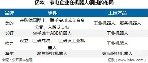 在機(jī)器人領(lǐng)域,美的、格力、海爾、長虹紛紛布局。(詳細(xì)如下表)