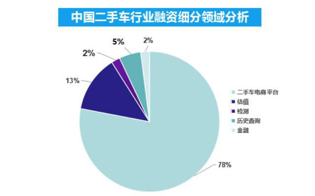 2、中國(guó)二手車行業(yè)投資細(xì)分領(lǐng)域分:二手車電商平臺(tái)占受資本青睞