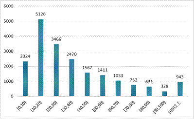 實際融資額各區(qū)間內(nèi)項目數(shù)分布