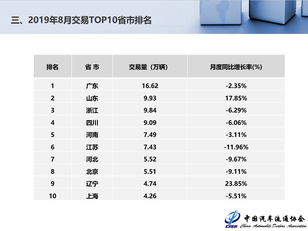 2019年8月全國二手車市場分析