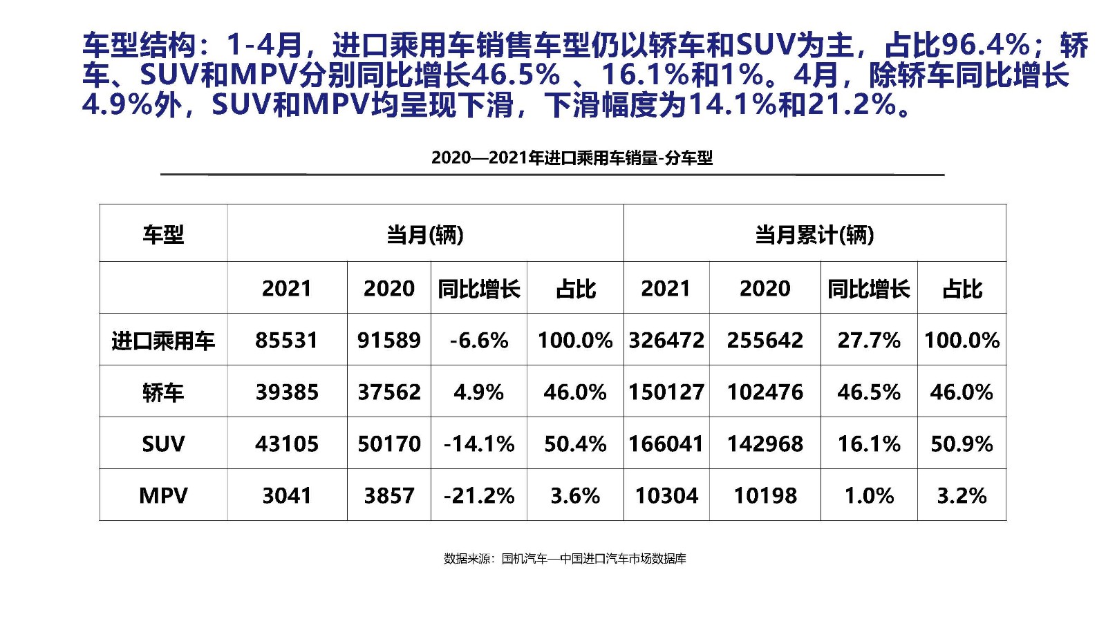 2021年4月中國進(jìn)口汽車市場情況