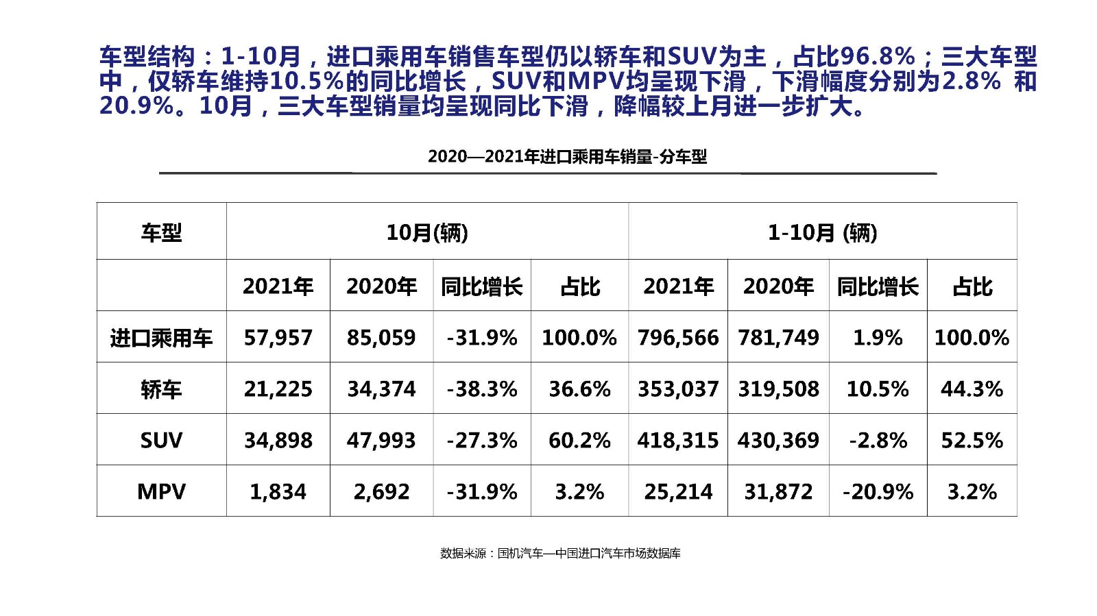 2021年10月中國進(jìn)口汽車市場(chǎng)情況