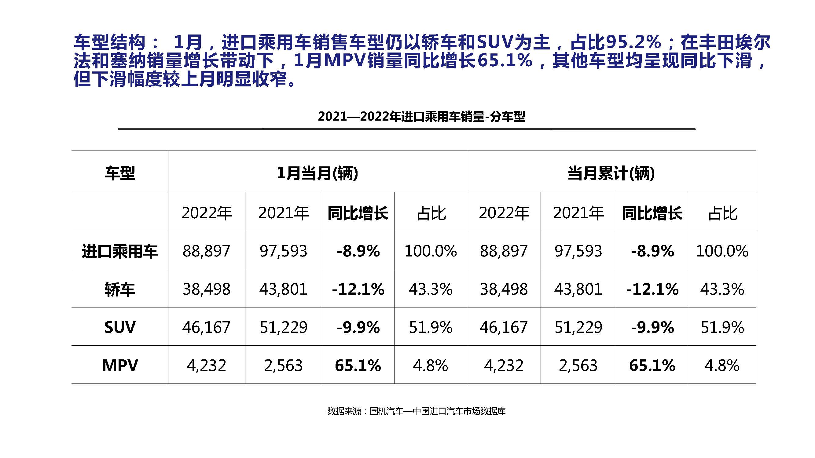 2022年1月中國(guó)進(jìn)口汽車市場(chǎng)情況