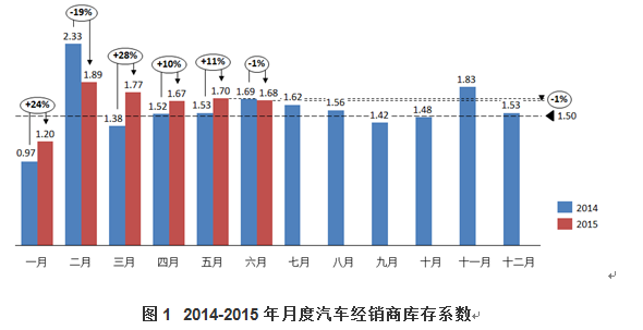 2015年6月份經(jīng)銷商庫存系數(shù)為1.68