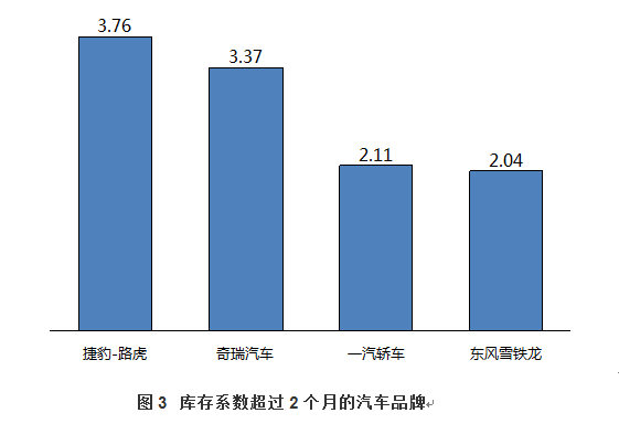 三、有四個(gè)品牌庫存系數(shù)超過2個(gè)月
