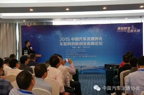 2015年11月6日下午,由中國汽車流通協(xié)會電商車聯(lián)網(wǎng)分會主辦的“2105中國汽車流通協(xié)會車聯(lián)網(wǎng)創(chuàng)新創(chuàng)業(yè)峰會”在廈門國際會議展覽中心隆重召開,圍繞“市場、趨勢、創(chuàng)新、創(chuàng)業(yè)”四大主題展開交流和討論,來自流通行業(yè)協(xié)會、經(jīng)銷商集團、以及車聯(lián)網(wǎng)企業(yè)代表、后市場企業(yè)代表和汽車服務商代表等100余人參加了本次峰會。
