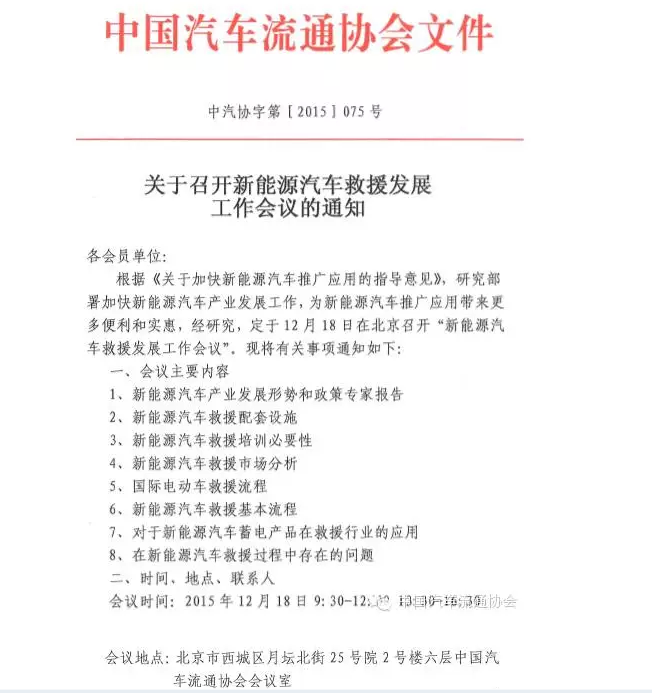 關(guān)于召開新能源汽車救援發(fā)展工作會(huì)議的通知