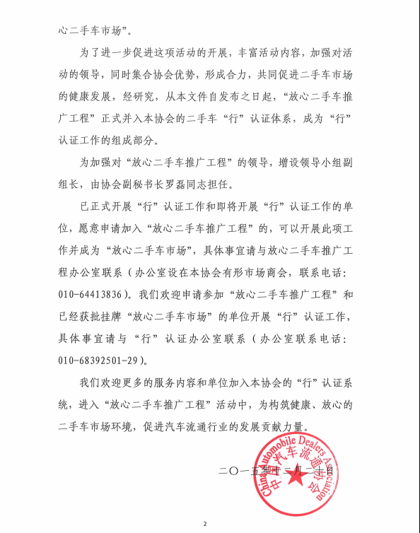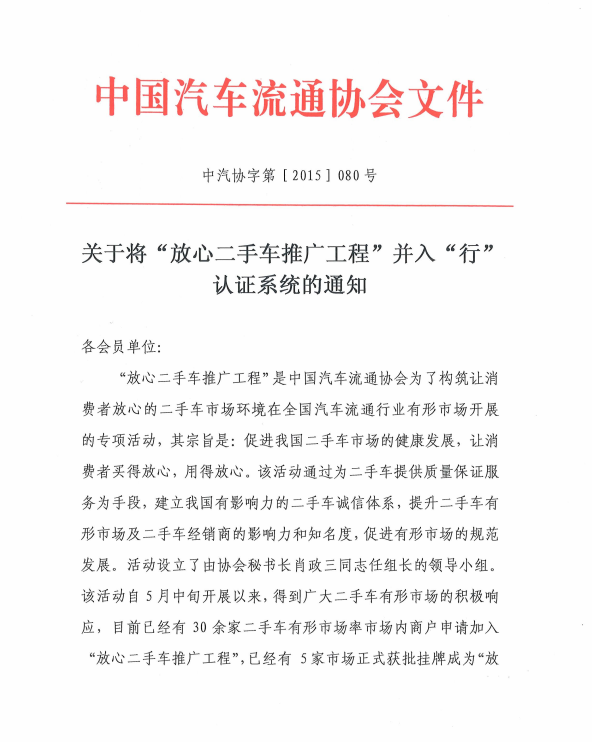 關(guān)于將“放心二手車推廣工程”并入“行”認(rèn)證系統(tǒng)的通知