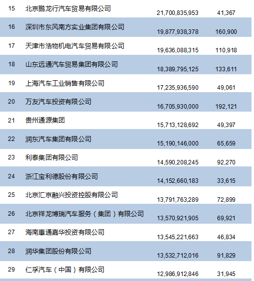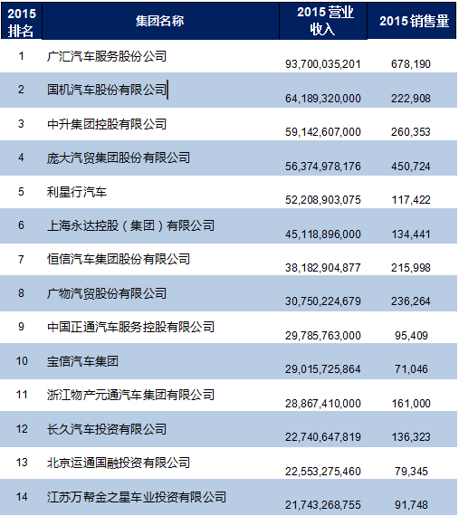 2015年度中國汽車經(jīng)銷商集團(tuán)百強(qiáng)榜