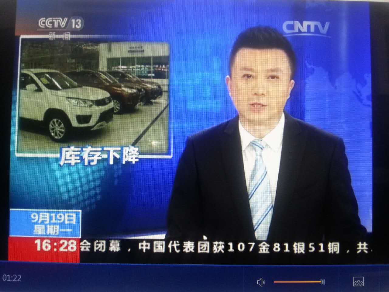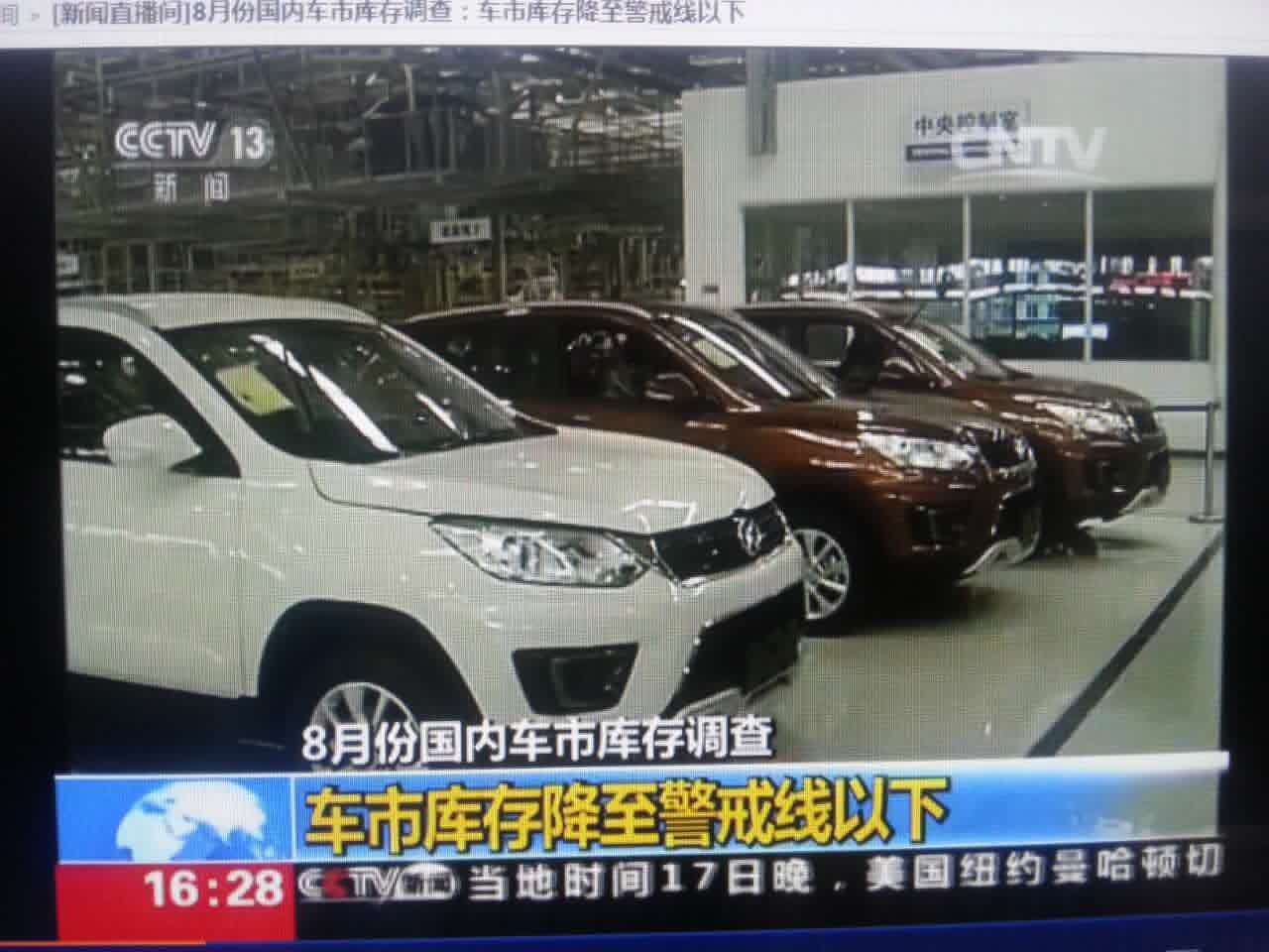 今日(9月19日),央視CCTV13新聞頻道據(jù)中國汽車流通協(xié)會發(fā)布的2016年8月份“汽車經(jīng)銷商庫存調(diào)查結(jié)果”報道,8月份汽車經(jīng)銷商綜合庫存水平回落至警戒線以下。