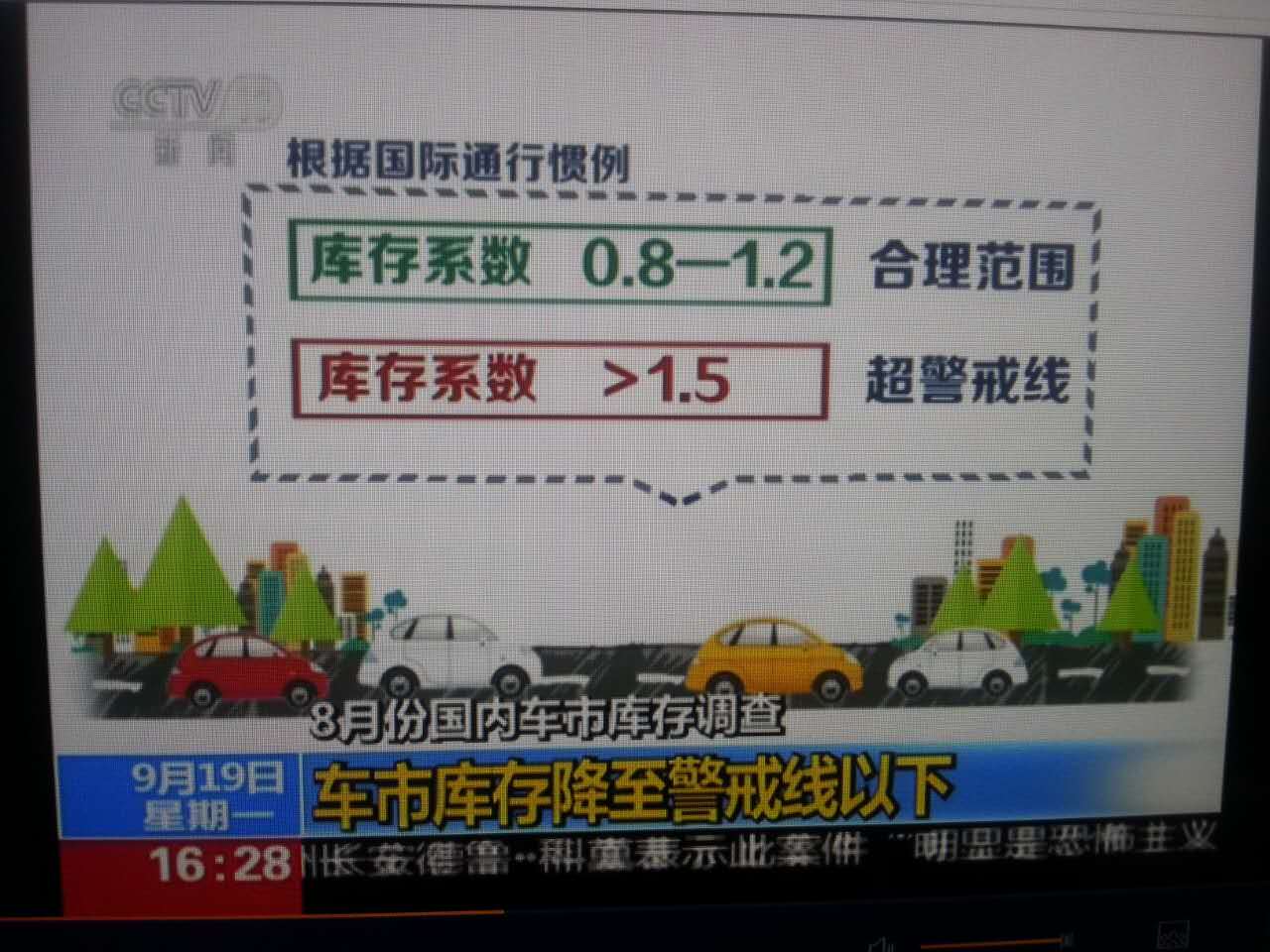 央視報道8月份汽車經(jīng)銷商綜合庫存水平回落