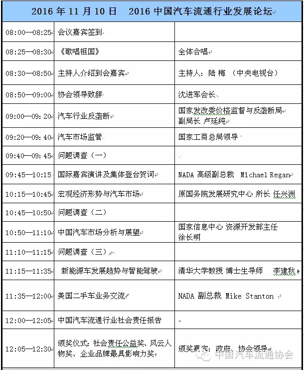2016中國汽車流通行業(yè)年會主論壇議程如下: