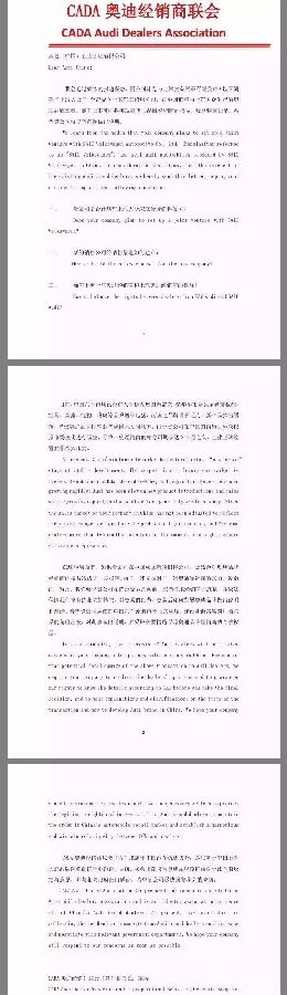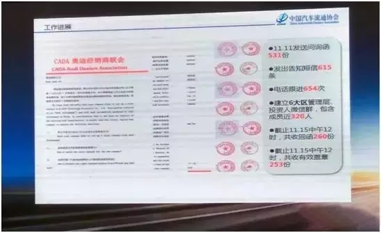 11月15日下午,奧迪經(jīng)銷商聯(lián)會籌委會秘書長宋濤先生,親手將這份問詢函及收到的經(jīng)銷商蓋章文件交給奧迪銷售事業(yè)部德方總經(jīng)理任思明先生,讓其轉(zhuǎn)交給相關人員,并明確表示,要組織談判小組,約談奧迪德國高層,要求德方十日內(nèi)給與答復。任思明當場就表示接受這個挑戰(zhàn),邀請奧迪德國董事盡快與奧迪經(jīng)銷商見面,談奧迪與上汽的合資事宜。