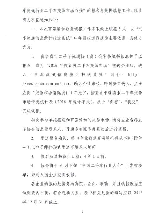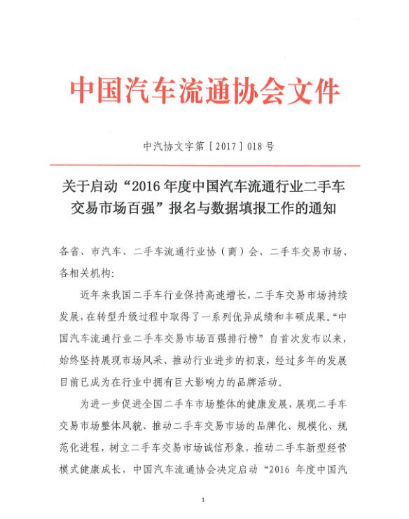 關(guān)于“2016年度二手車市場(chǎng)百?gòu)?qiáng)”啟動(dòng)的通知