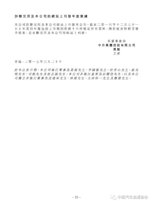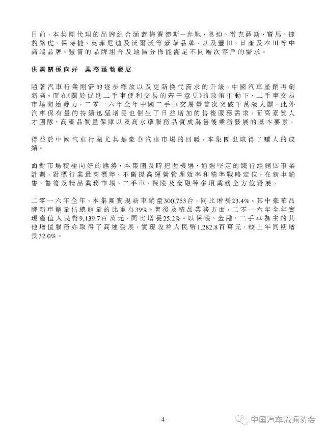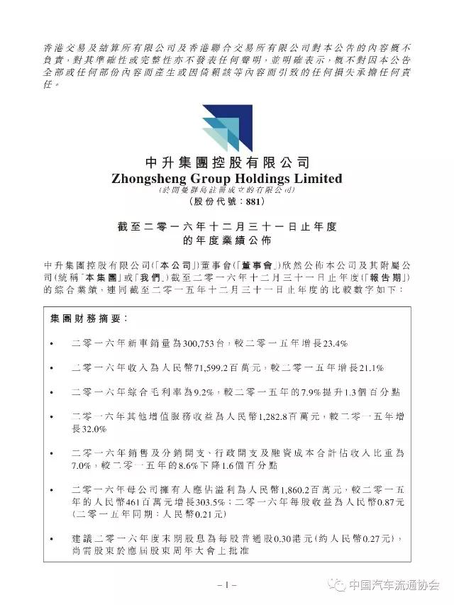 百強汽車經(jīng)銷商集團“中升汽車”2016年度經(jīng)營業(yè)績公布