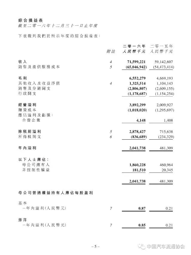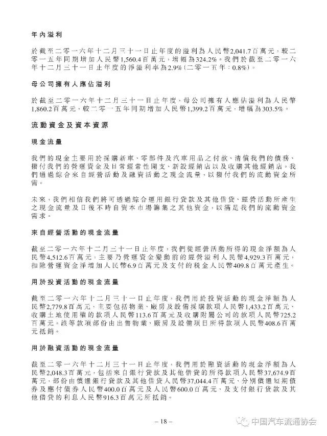 2015年百強汽車經(jīng)銷商集團排行榜中排名第三的中升集團控股有限公司(以下簡稱“中升汽車”)于今日公布了其公司及附屬公司2016年1月1日至2016年12月31日的綜合經(jīng)營業(yè)績。相關(guān)數(shù)據(jù)顯示,中升汽車在2016年的各項經(jīng)營活動中取得了驕人的業(yè)績,特別是集團凈利潤增幅超過300%,企業(yè)盈利能力得到大幅提升。