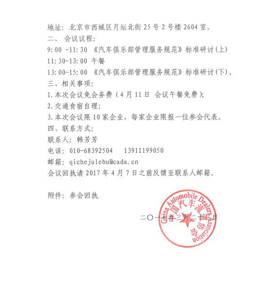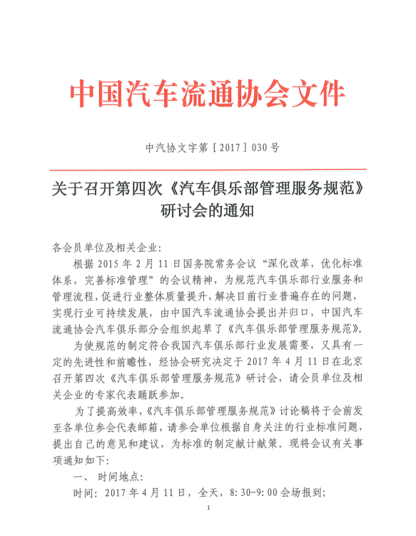關(guān)于召開第四次《汽車俱樂部管理服務(wù)規(guī)范》 研討會的通知