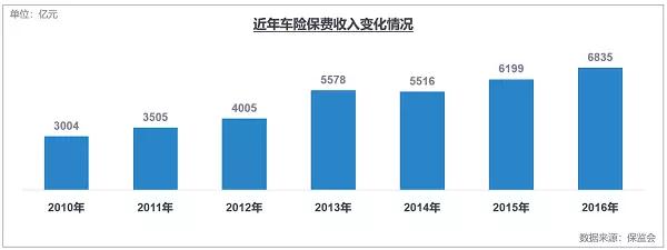 在汽車銷量及保有量持續(xù)增長的背景下,汽車保險業(yè)務的保費收入也隨之呈現(xiàn)逐年增長的發(fā)展態(tài)勢,雖近年來增速有所放緩,但如能維持2016年10.3%的增速,預計至2020年,保費收入將達萬億規(guī)模。