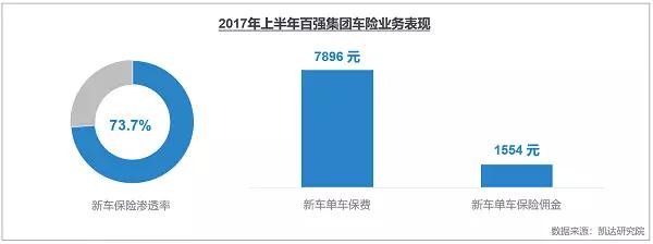 根據(jù)經(jīng)銷商百強集團2017年上半年的數(shù)據(jù)顯示,4S店新車保險業(yè)務滲透率已達73.7%,單車保費及單車傭金分別達到7896元、1554元,汽車保險業(yè)務已經(jīng)成為4S店新車銷售及售后維修利潤的重要來源。