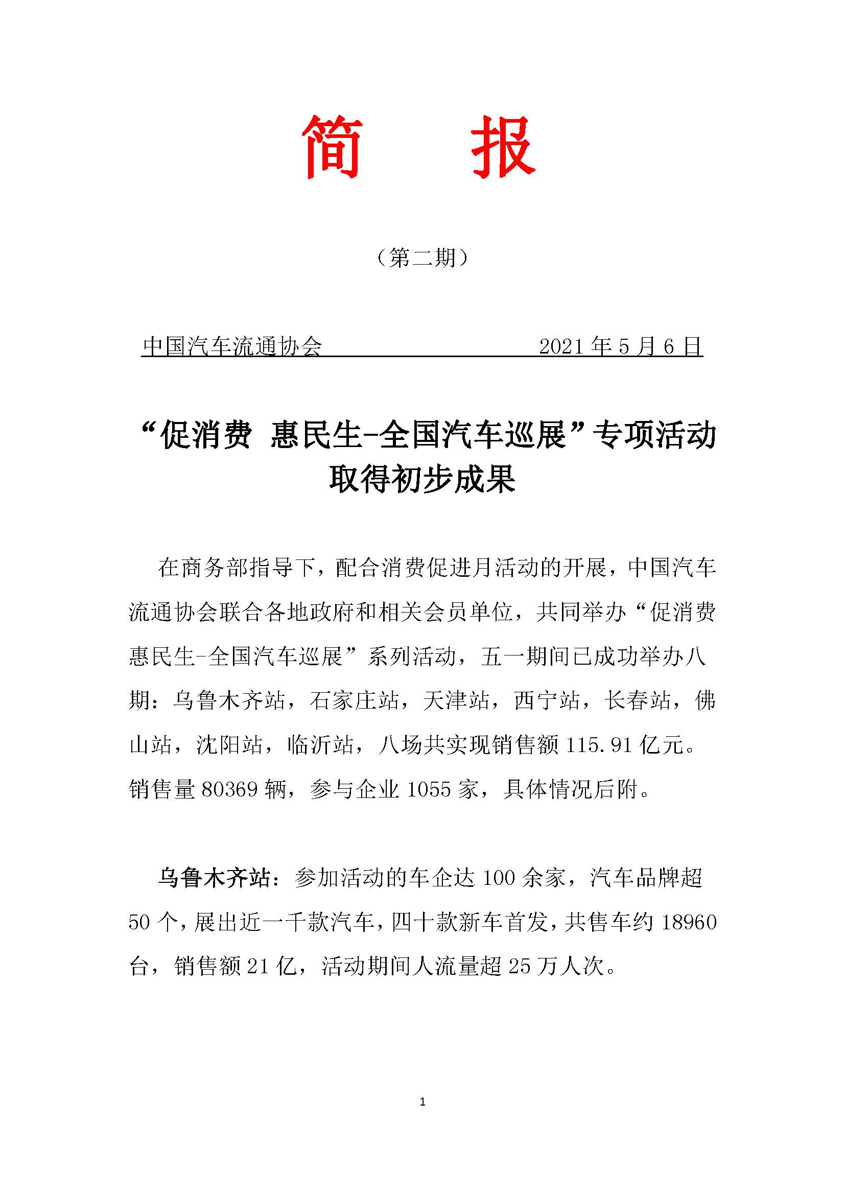 簡(jiǎn)報(bào)“促消費(fèi) 惠民生-全國(guó)汽車(chē)巡展”專項(xiàng)活動(dòng)(第二期)取得初步成果