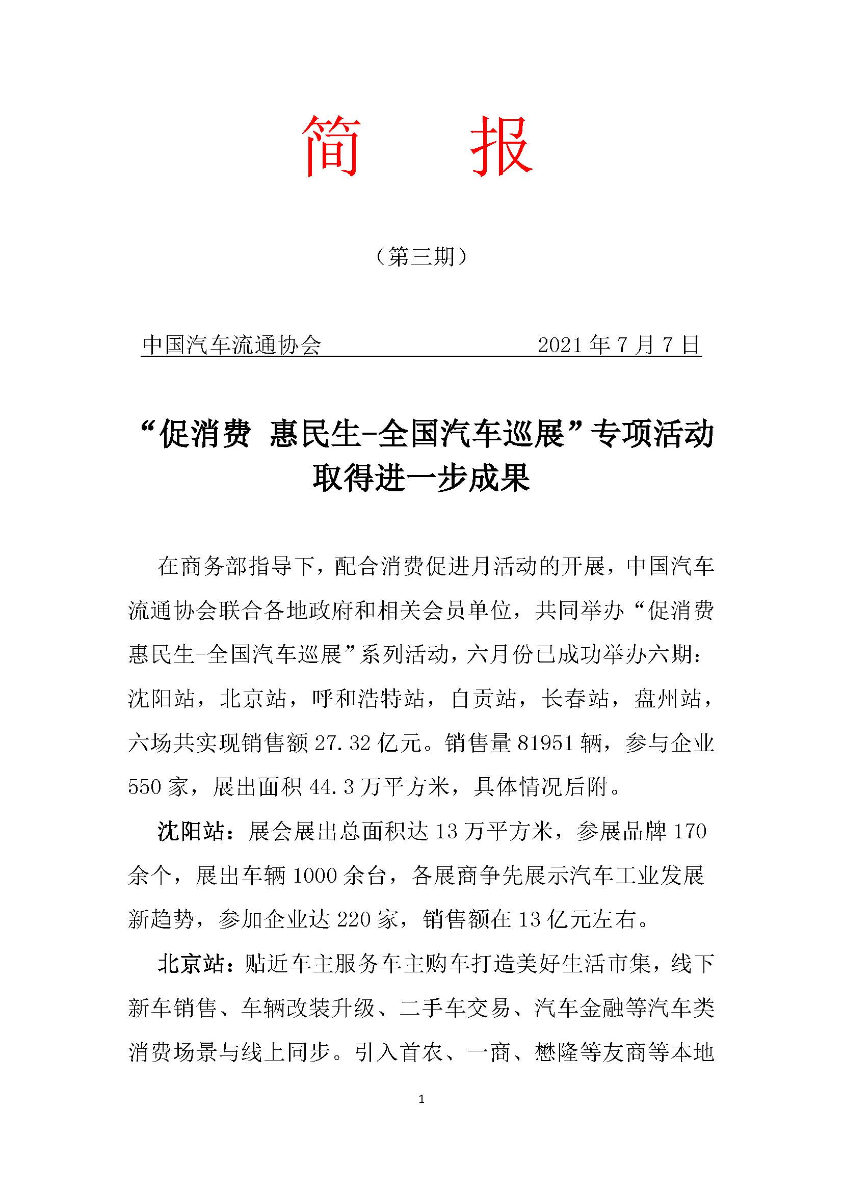 “促消費(fèi) 惠民生-全國(guó)汽車巡展”專項(xiàng)活動(dòng)(第三期)取得進(jìn)一步成果