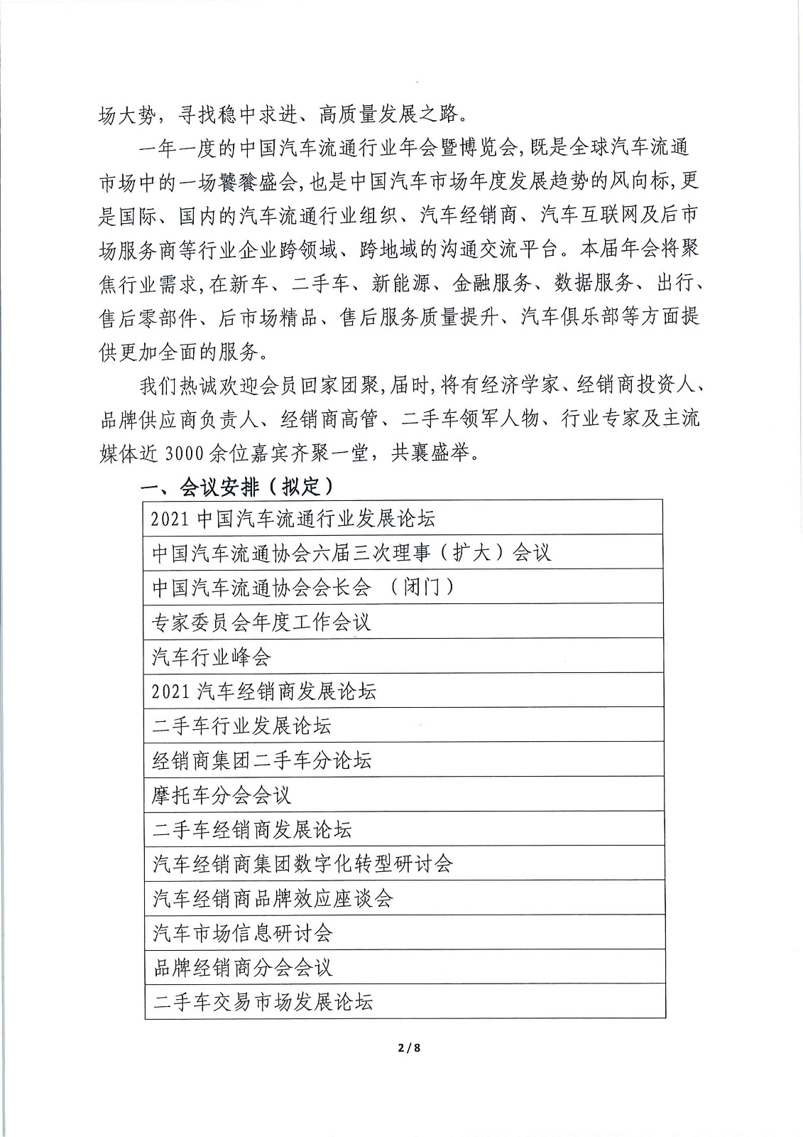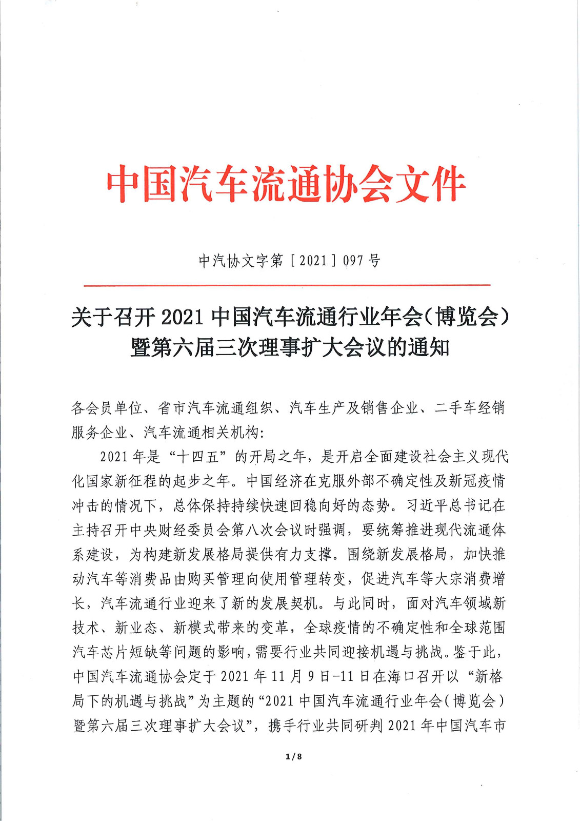 關(guān)于召開2021中國汽車流通行業(yè)年會(博覽會)暨第六屆三次理事擴大會議的通知