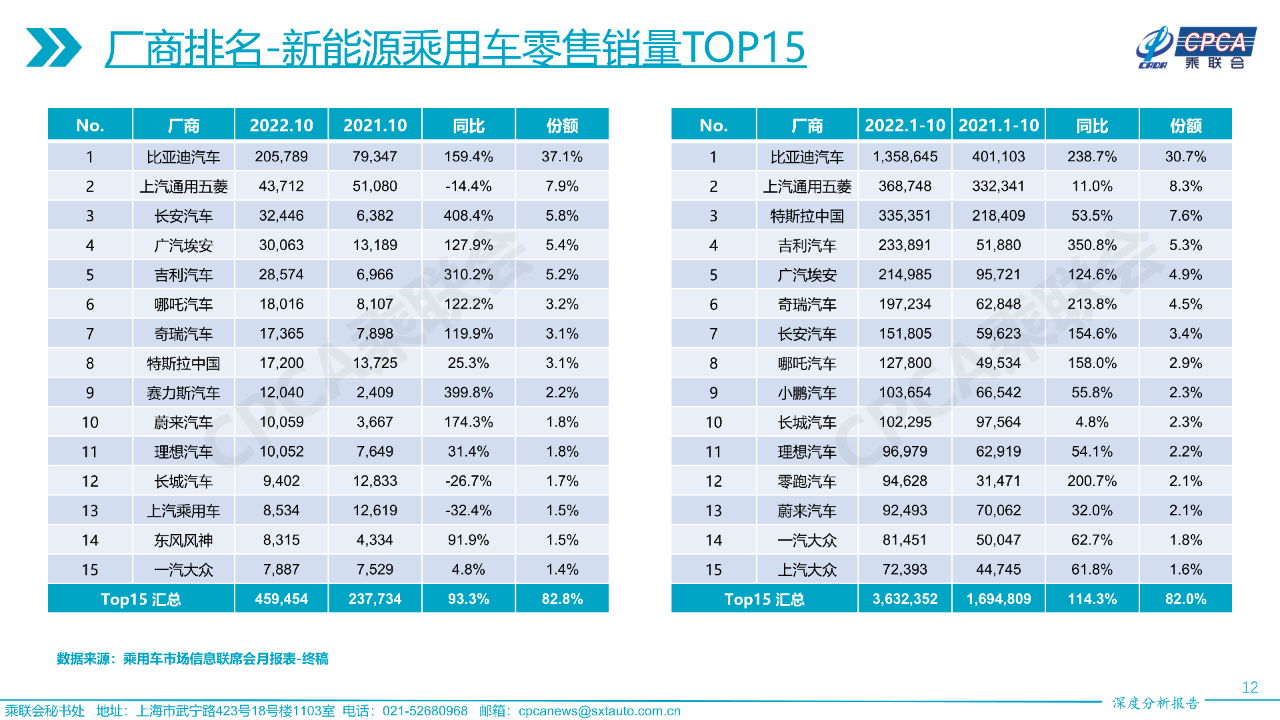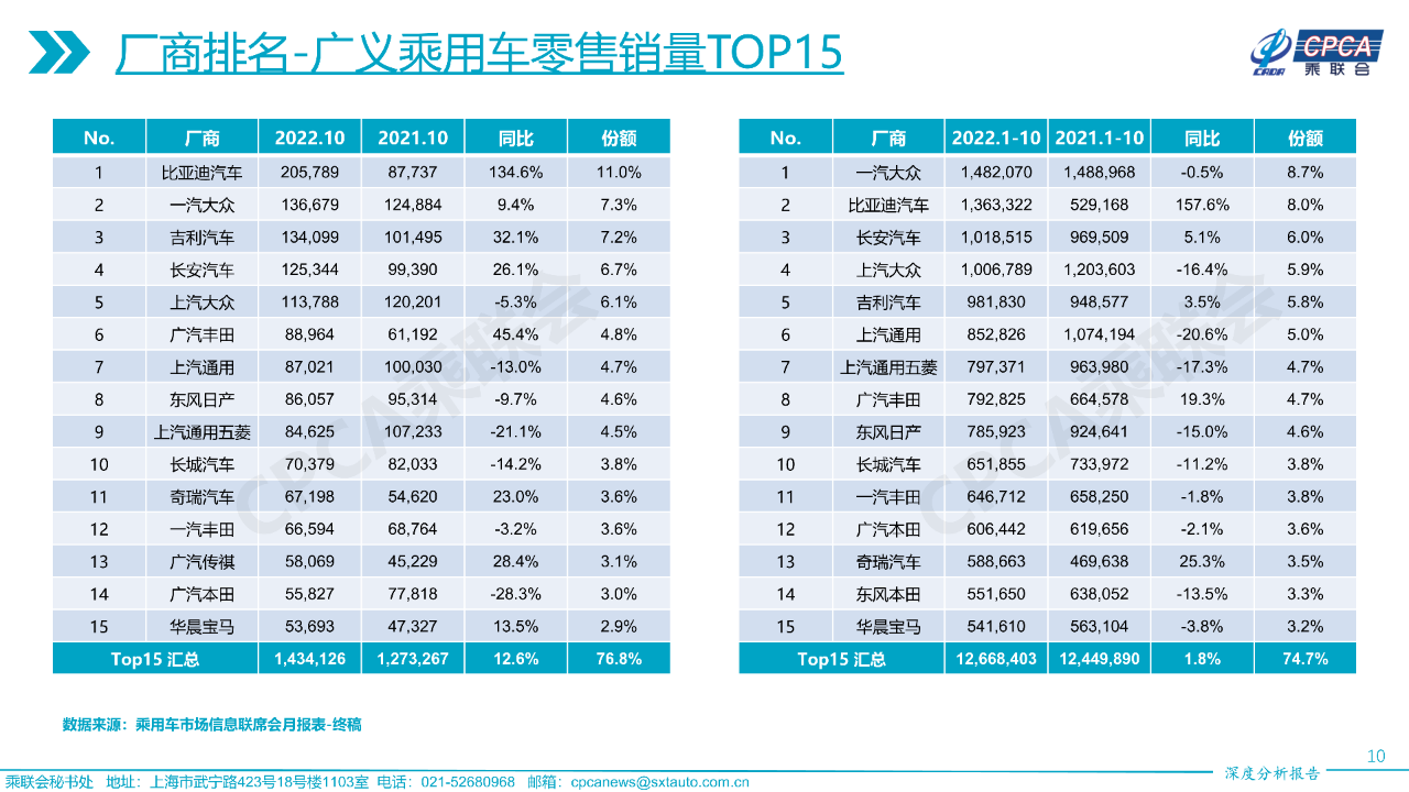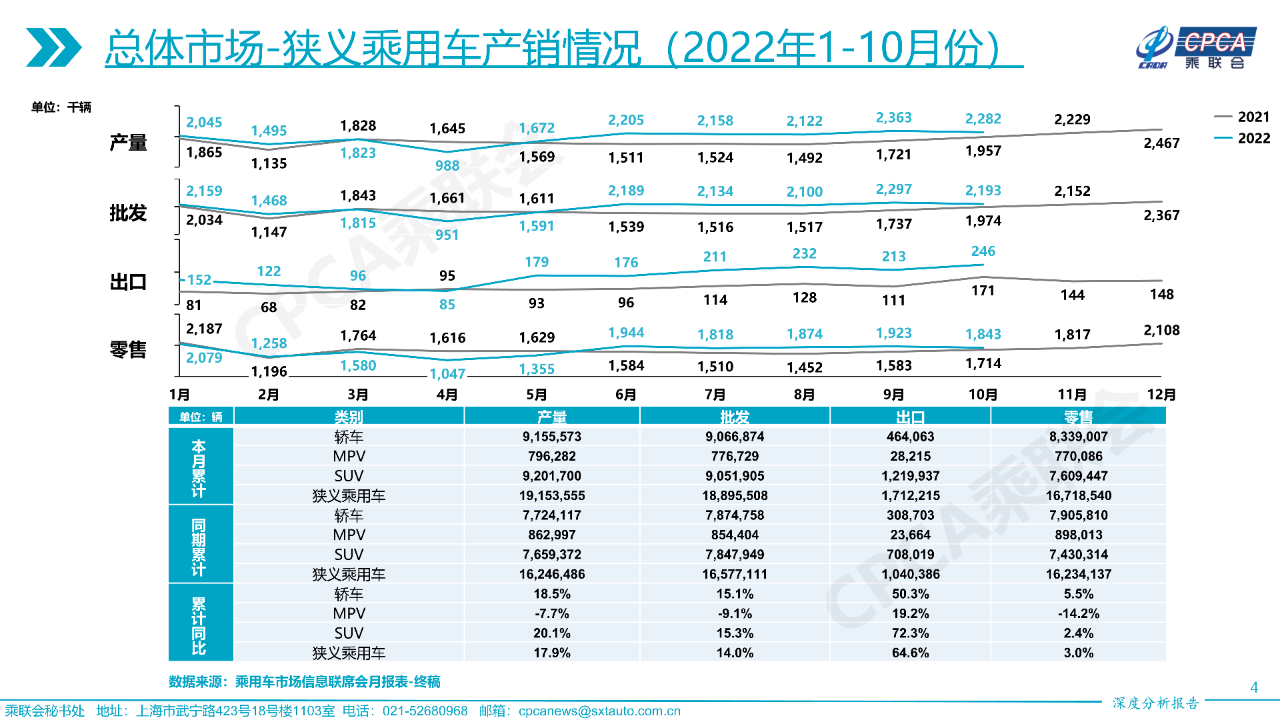 狹義乘用車產(chǎn)銷情況——2022年10月及累計