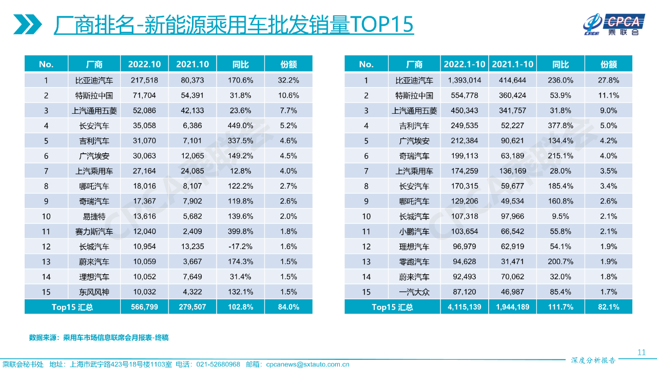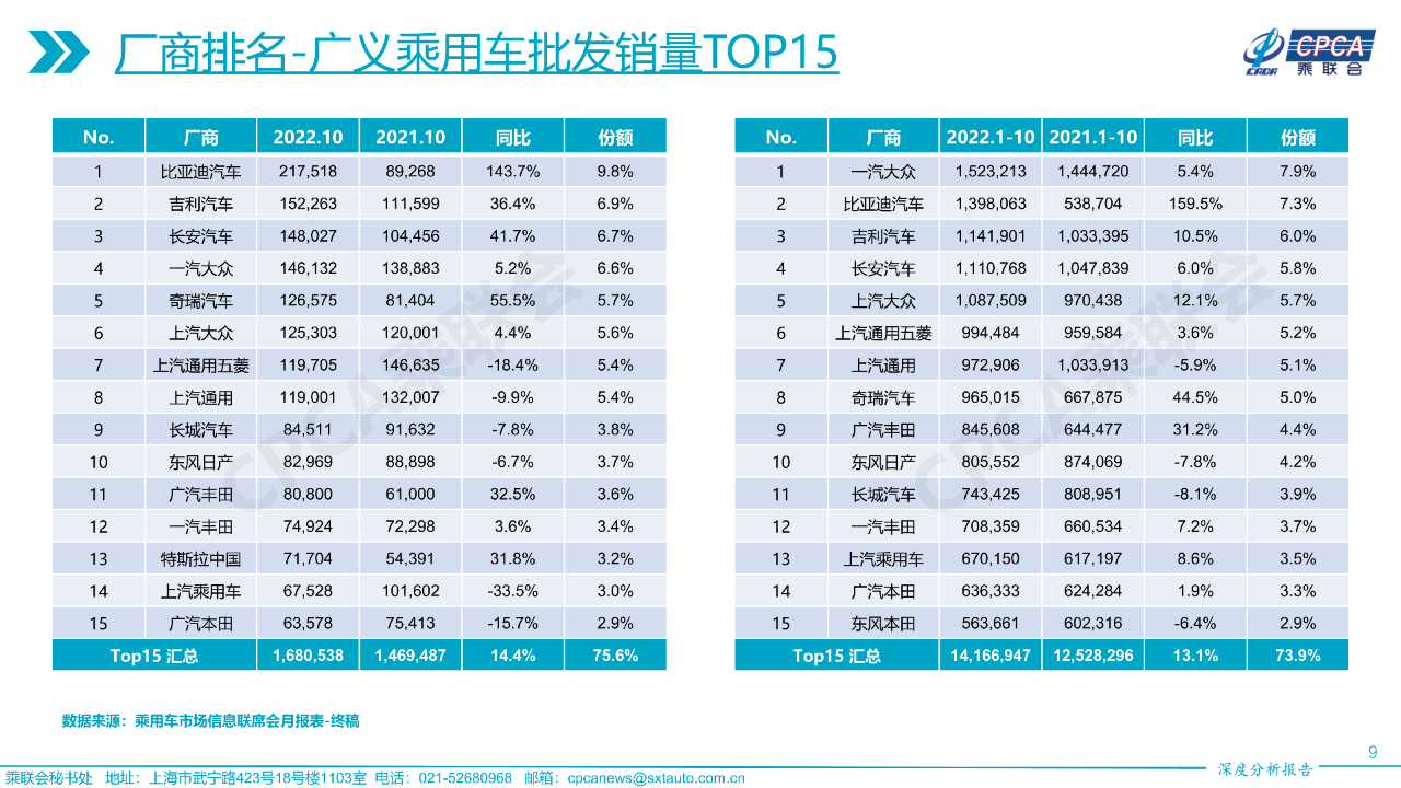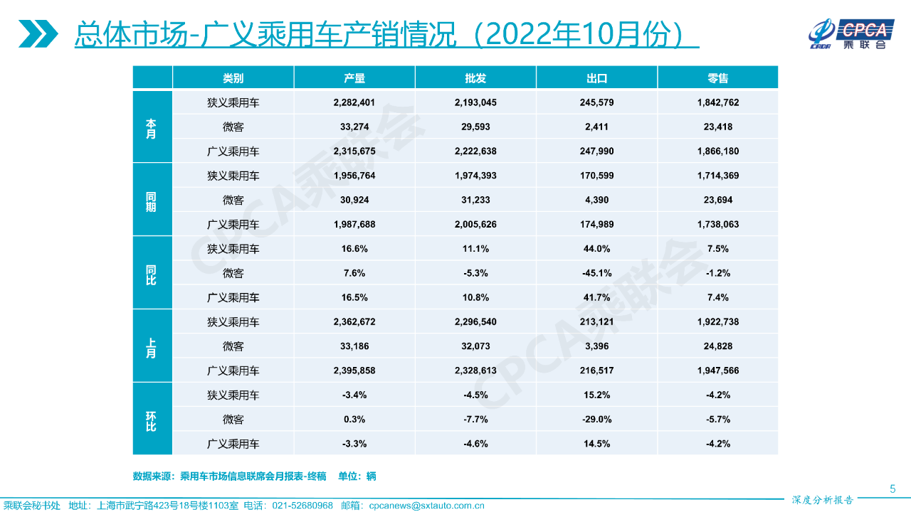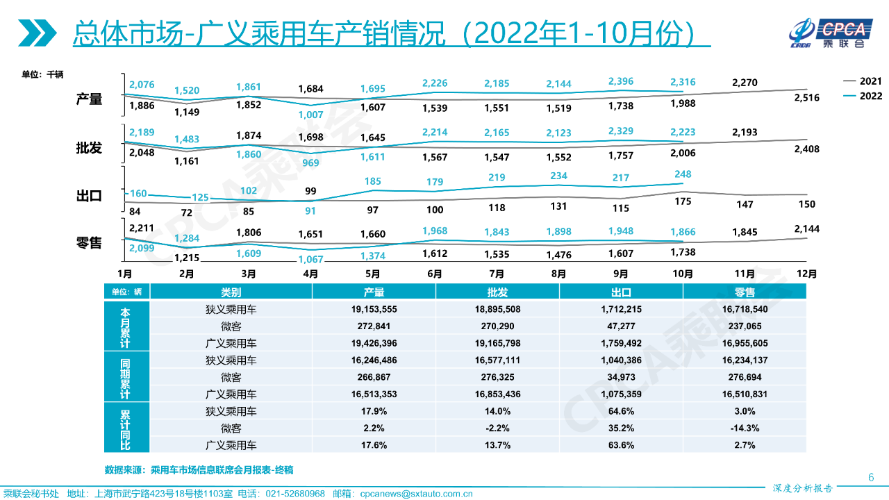 廣義乘用車產(chǎn)銷情況——2022年10月及累計