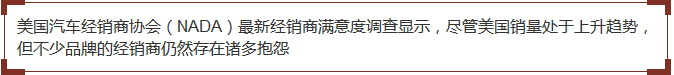 根據(jù)美國汽車經(jīng)銷商協(xié)會(NADA)最新的經(jīng)銷商滿意度調(diào)查,整體上來講,上述品牌的經(jīng)銷商滿意度是最低的。