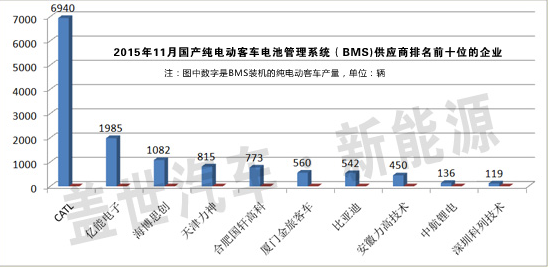 以下是2015年11月國產(chǎn)純電動客車排名前10位的BMS供應商及裝機量統(tǒng)計詳情: