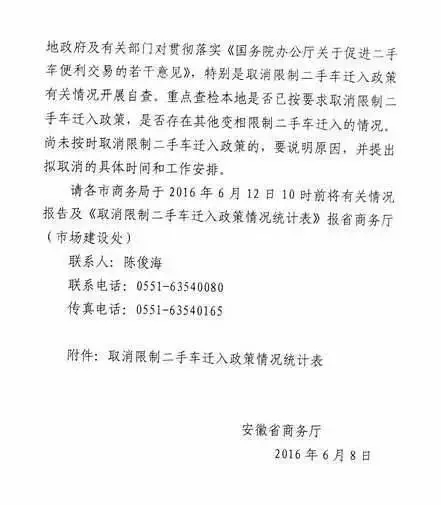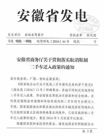 安徽省發(fā)出通知:取消限制二手車(chē)遷入政策!要求各地規(guī)范二手車(chē)交易秩序!
