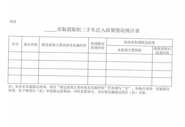 促進(jìn)二手車(chē)便利交易的若干意見(jiàn)明確要求,各地不得制定實(shí)施限制二手車(chē)遷入政策。符合國(guó)家在用機(jī)動(dòng)車(chē)排放和安全標(biāo)準(zhǔn),在環(huán)保定期檢驗(yàn)有效期和年檢有效期內(nèi)的二手車(chē)均可辦理遷入手續(xù)。但國(guó)家鼓勵(lì)淘汰和要求淘汰的相關(guān)車(chē)輛,以及國(guó)家明確的大氣污染防治重點(diǎn)區(qū)域有特殊要求的除外。已經(jīng)實(shí)施限制二手車(chē)遷入政策的地方,要在2016年5月底前予以取消。