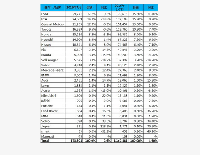 以下是7月乘用車(chē)分品牌銷(xiāo)量情況: